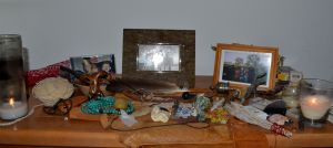 And as Rosemary requested I have included here a picture of my current alter configuration…it may appear to you to be a bit messy and cluttered; maybe that’s how my life is right now! (And maybe its state is pointing the way to some external work I need to do!)