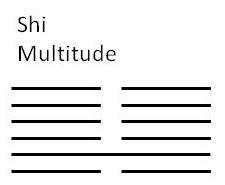This Gua, Multitude, speaks to this modern social dilemma. Note the second line is the only solid, Yang, or strong line in the hexagram. The Yin lines seem to pivot about this second line, the leader of the multitude. “He” derives his authority from the Yin line at the fifth position, a line representing feminine energy. There is excellent balance between masculine and feminine power in this Gua and the other Yin lines represent the community.